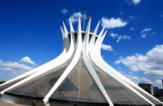 Еще одним достоянием Бразилии можно назвать необычный по форме кафедральный собор, возведенный в 1970 году в ее столице. Это удивительное здание построено из 16 бетонных изогнутых столбов, каждый из которых весит 90 тонн. Статуи и скульптуры, расположенные внутри собора и окружающие его, заставляют замереть от восторга. Стеклянная крыша строения дает возможность видеть небо и ощутить целую гамму чувств.
